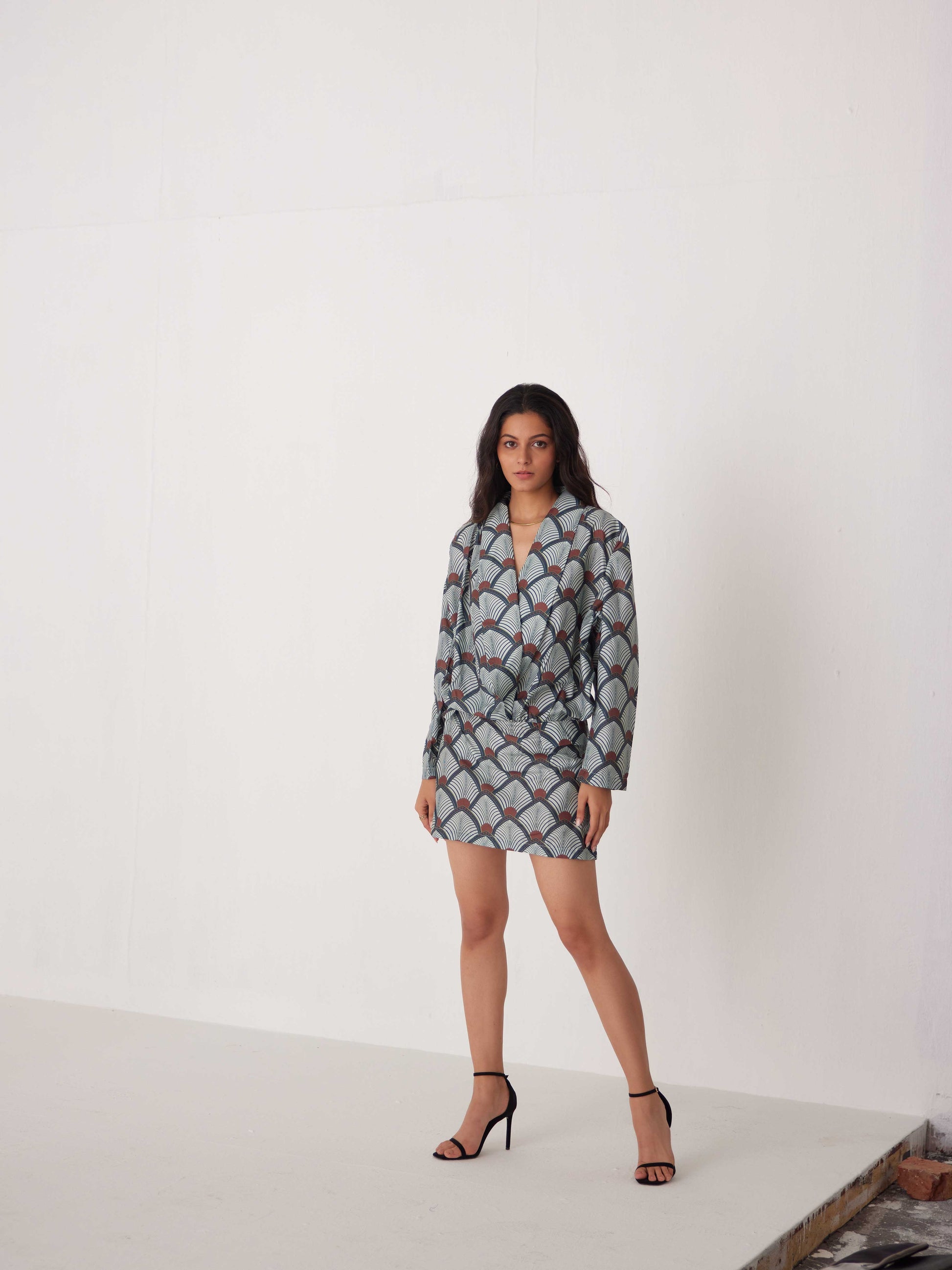 Step into the glamour of the art deco era with our Coat Silhouette Mini Dress, featuring an art deco print-inspired design. This dress combines vintage elegance with a contemporary twist, making it perfect for night parties. Elevate your style with a piece that exudes sophistication and captures the essence of the roaring twenties, ensuring you stand out at any evening event.