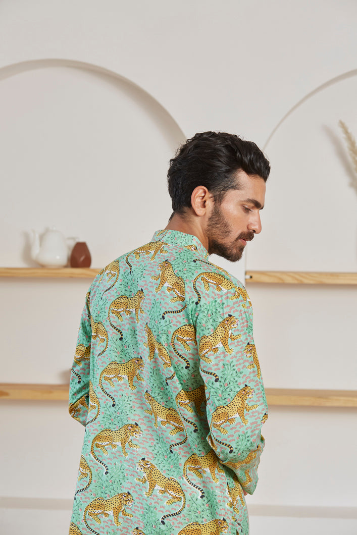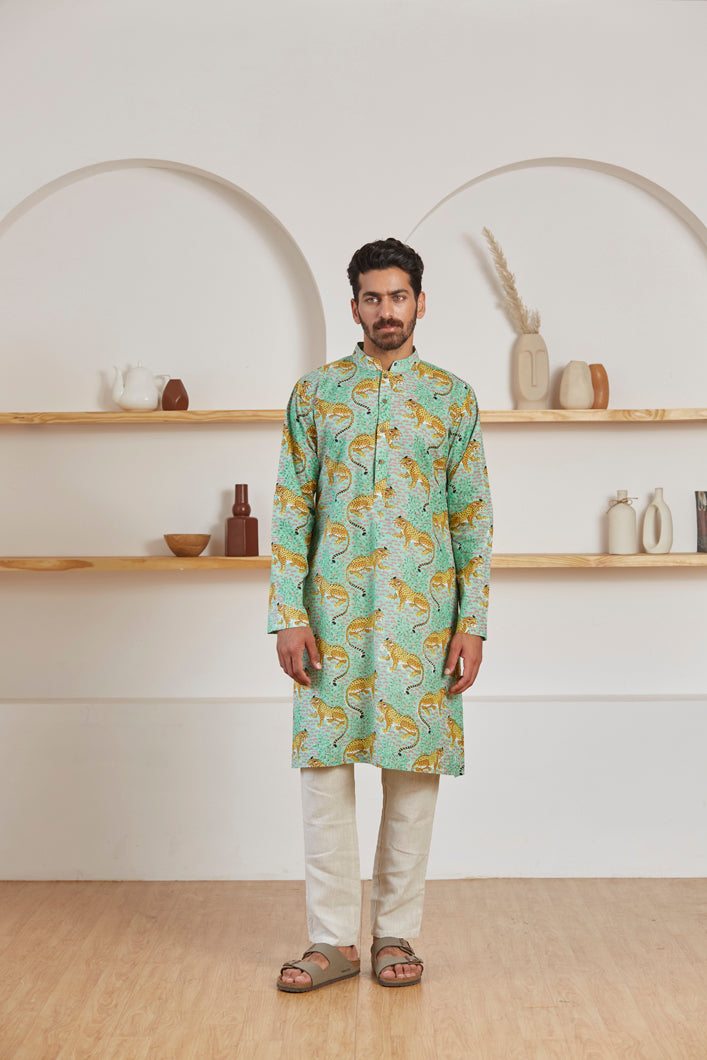 Classic yet very comfortable, our Baagh Print Kurta is timeless. Made of soft cotton yarns, the kurta looks absolutely stylish and is definitely going to match your personality.