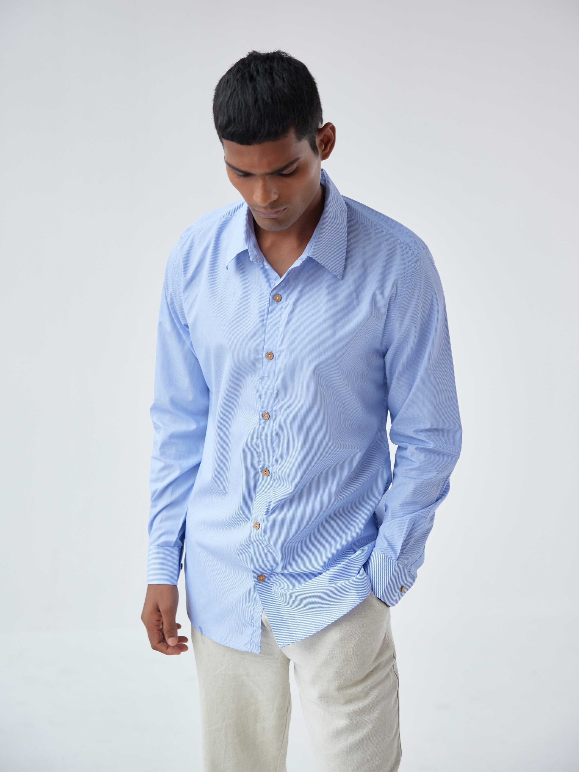 Elevate your wardrobe with our Sky Blue Full-sleeves poplin shirt, meticulously crafted from Relaxed Fit cotton poplin. The clean, tailored silhouette, complemented by lining on both sides, makes it a versatile choice for formal events or everyday elegance. Experience sophisticated style harmonized with unparalleled comfort, redefining your fashion standards effortlessly.