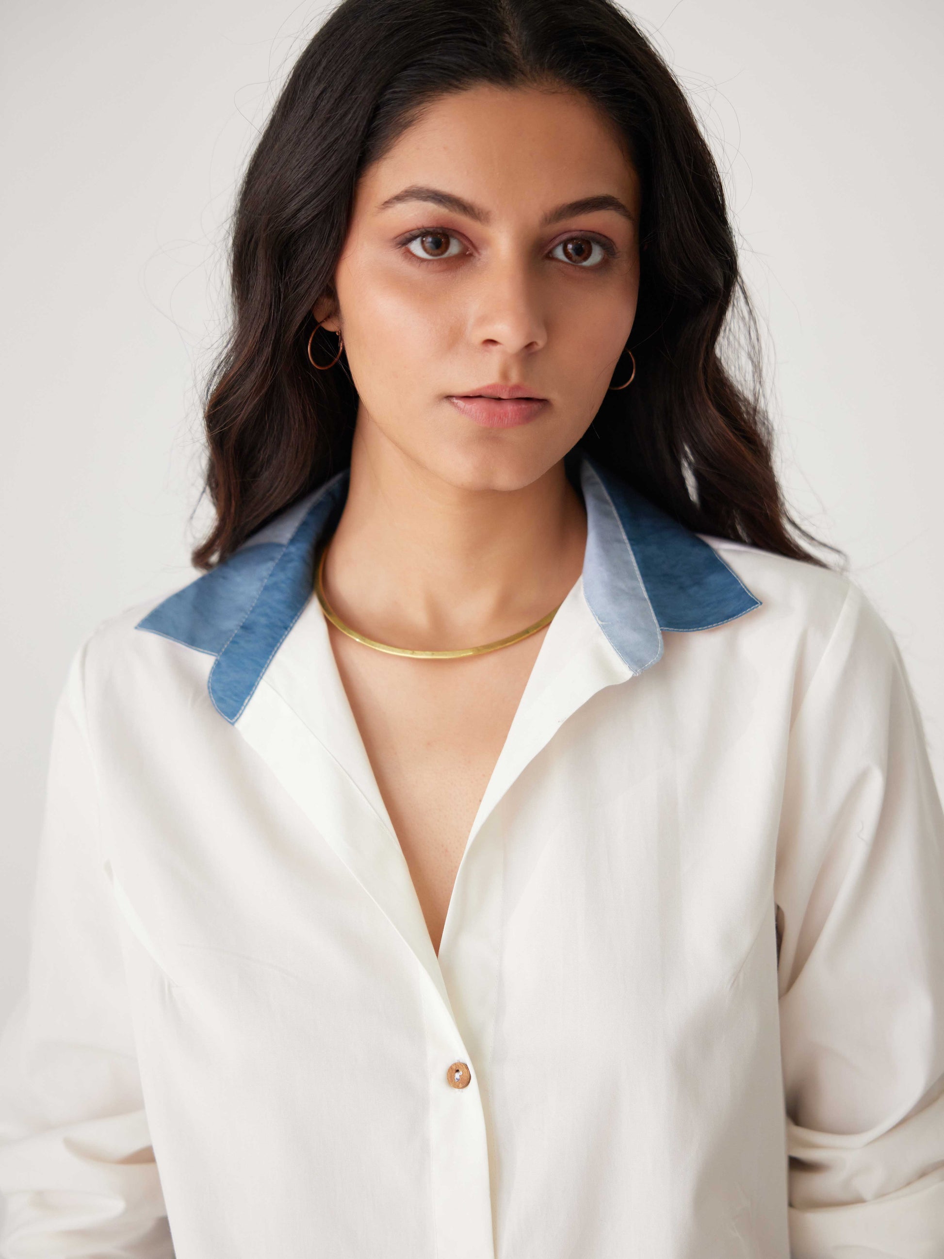 Elevate your style with our stylish and comfortable Co-ord Set, carefully designed for a relaxed fit and crafted from luxurious Viscose Crepe fabric. The shirt stands out with its pristine white cuffs and collar, while the back is adorned with captivating printed fabric.
