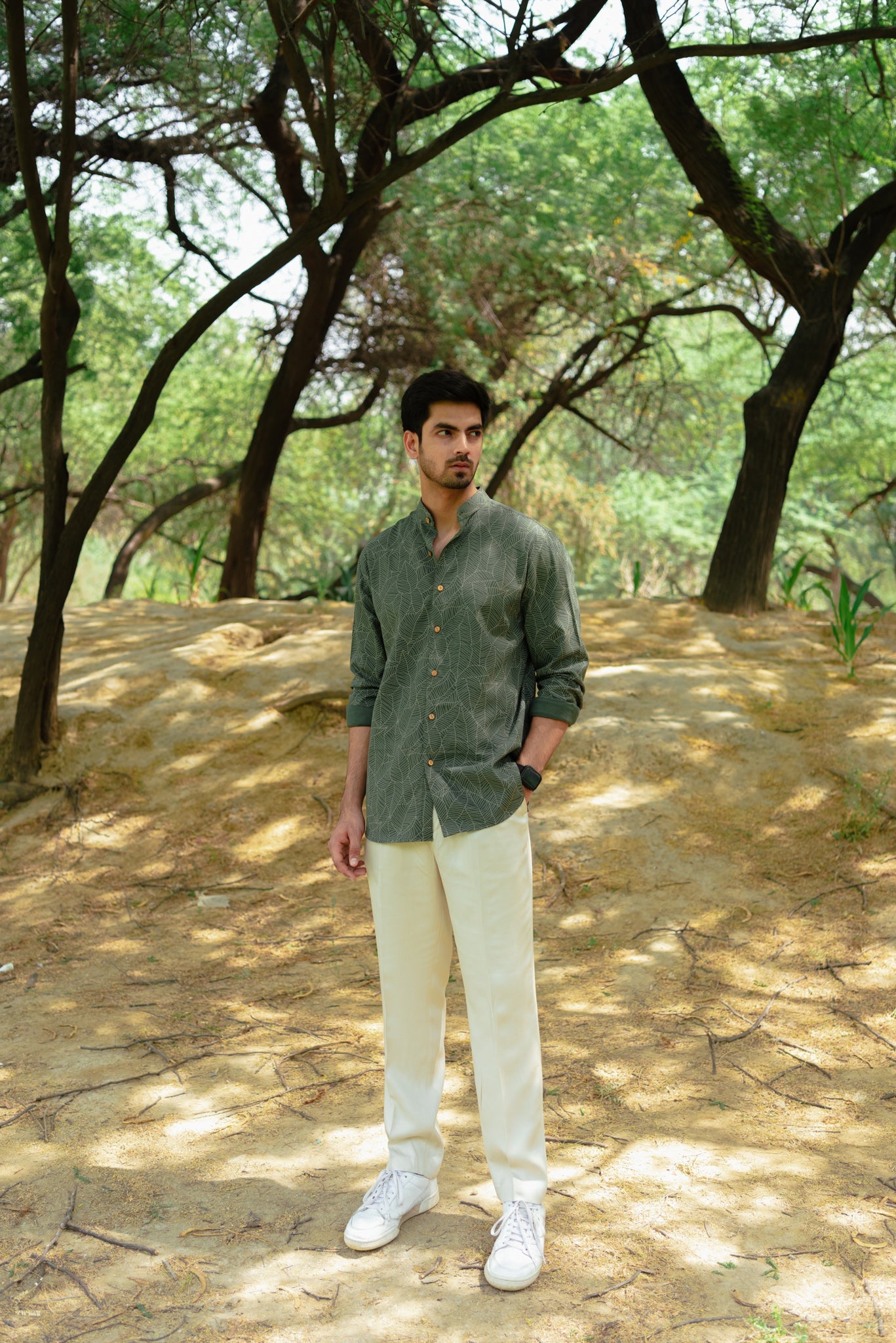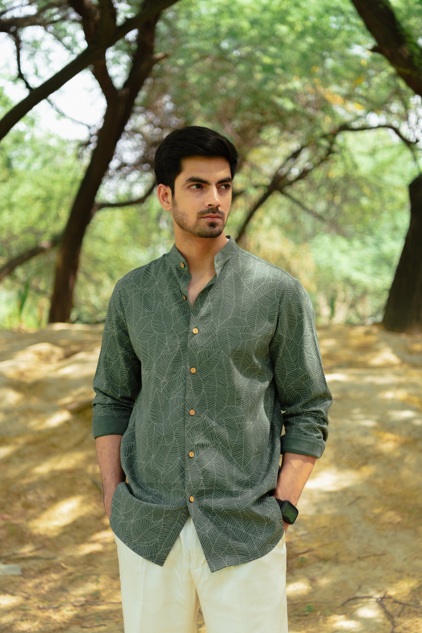 Project the vibrant energy you own in this green printed Shirt. Let the cotton keep you in incredible comfort as you go about your day. The cool, summery pattern is a great fit for your liveliness.