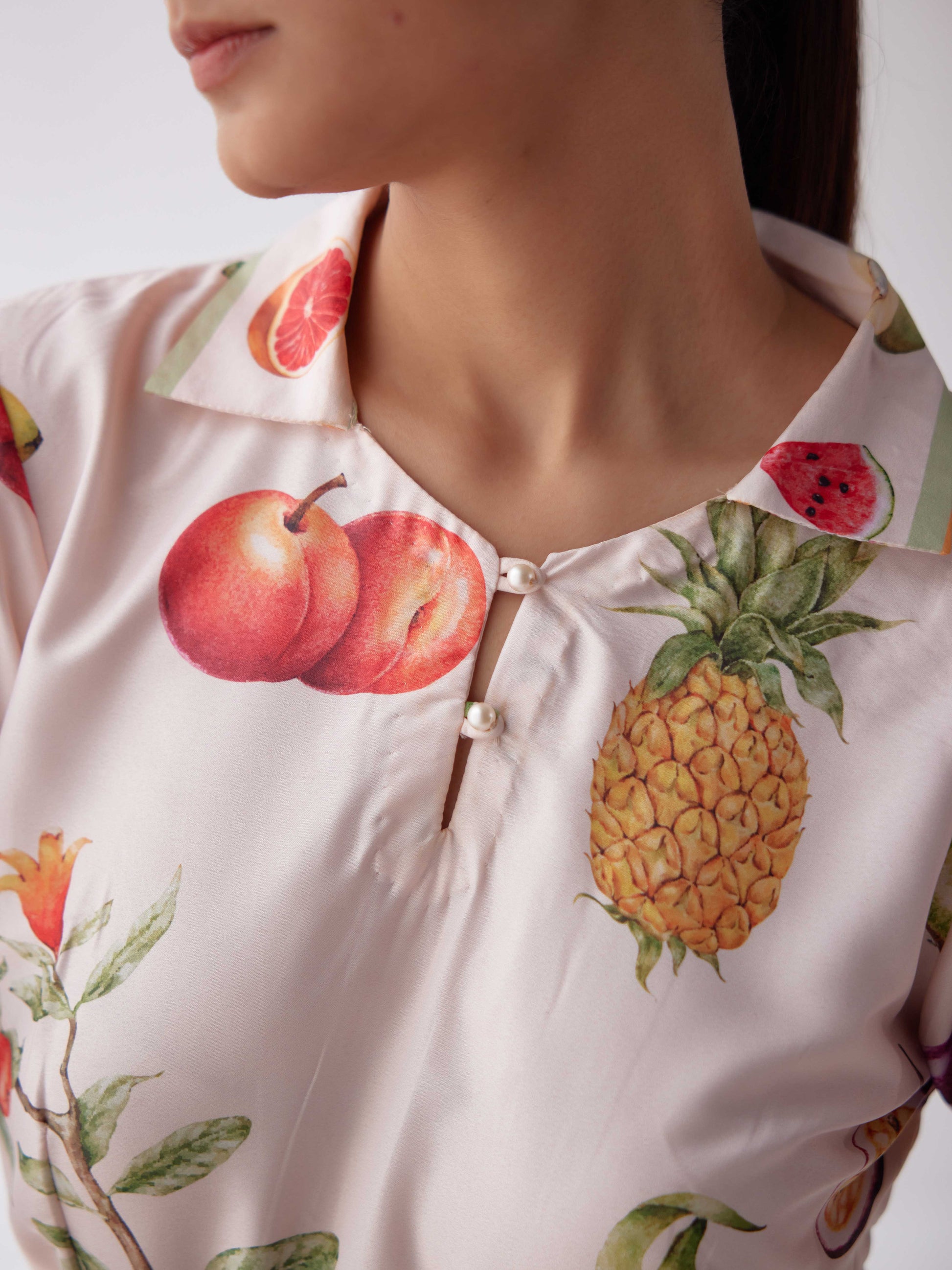 Infuse your wardrobe with fun and flair in our Quirky Tropical Fruits Midi Dress. This delightful piece boasts a lively print of tropical fruits, adding a playful touch to your style. The midi length strikes the perfect balance between chic and casual, making it versatile for various occasions. Embrace the vibrancy of tropical vibes with this unique and cheerful midi dress, ideal for those who love to express their style with a hint of whimsy.