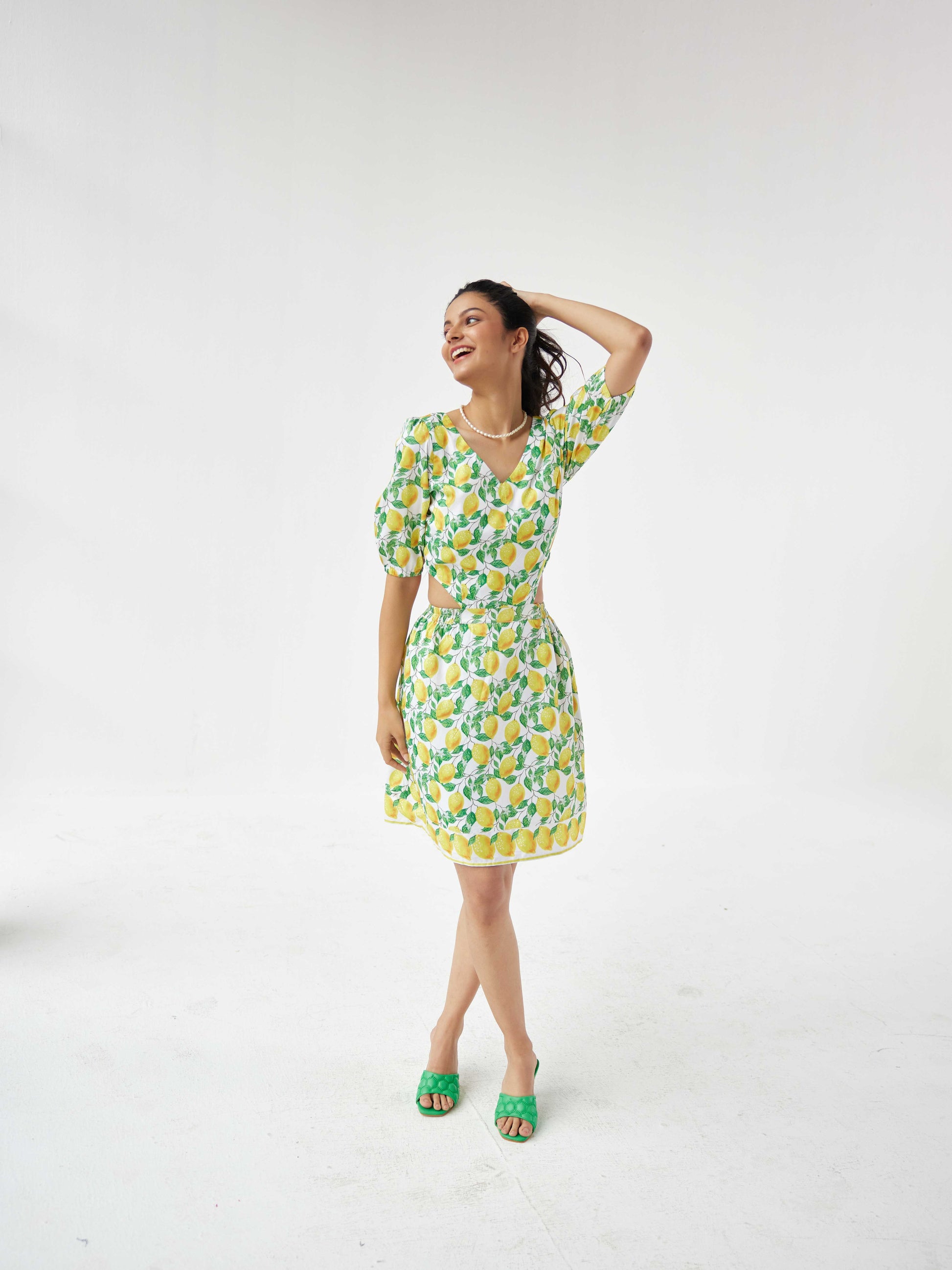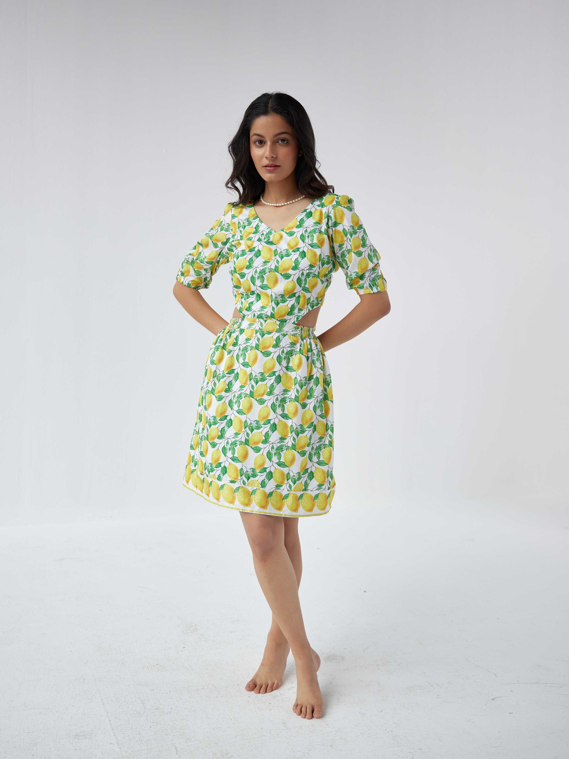 Embark on a journey with our Amalfi Coast-Inspired Dress, designed with signature waist cuts for a flattering fit. Adorned with a delightful Amalfi lemon print, this dress evokes the charm of the Italian coast. Perfect for your next dream vacation, it captures the essence of sun-soaked days and seaside adventures. Elevate your style and make a fashion statement that's both fresh and chic.