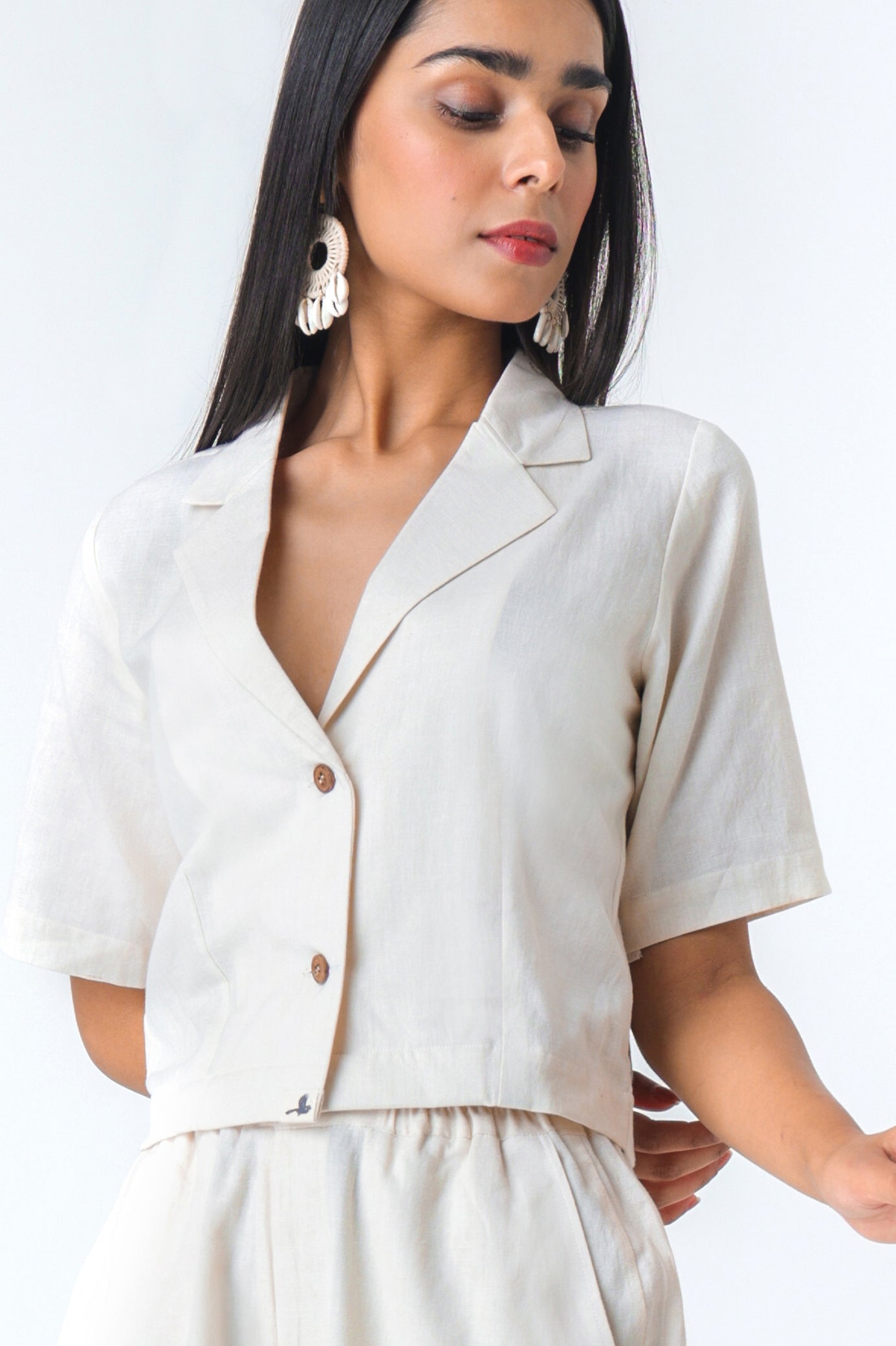 Immerse yourself in the soft elegance of this breezy, lightweight cotton top and shorts set. As hip as it is rustic, this coordinated set is sure to keep you active while looking chic throughout the day. The brown, wooden buttons give the top our signature rustic touch. Crafted with love, this set is a perfect fit for all your outdoor activities, or casual afternoon brunches with friends!