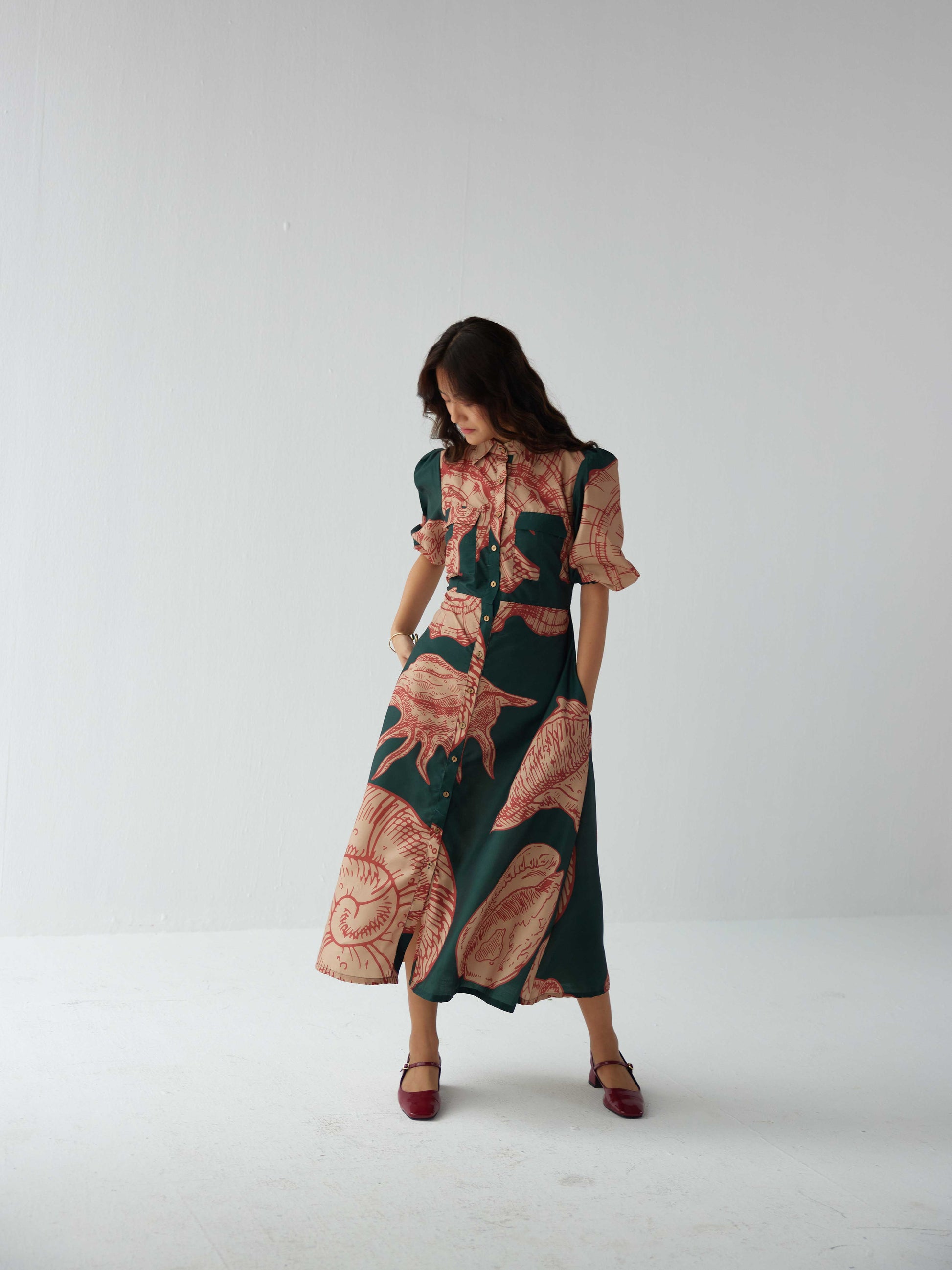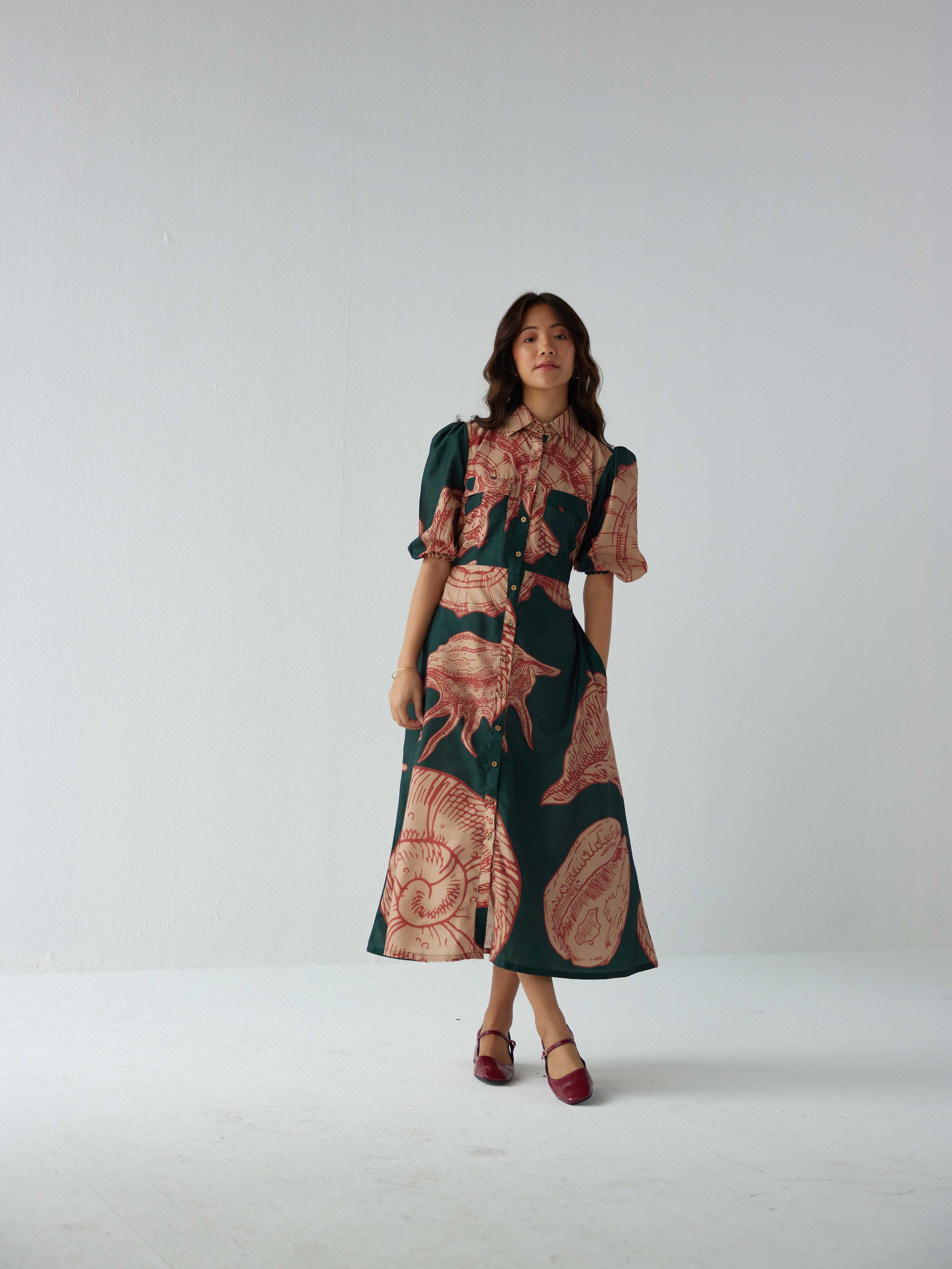 Make a statement in our Exaggerated Shell Printed Resort Dress. This captivating piece boasts an eye-catching shell print, bringing coastal vibes to your resort wardrobe. The exaggerated design adds a touch of drama and flair, making it a perfect choice for both daytime adventures and evening elegance. Embrace resort glamour with this unique and stylish dress, designed for those who want to stand out in chic, beach-inspired fashion.
