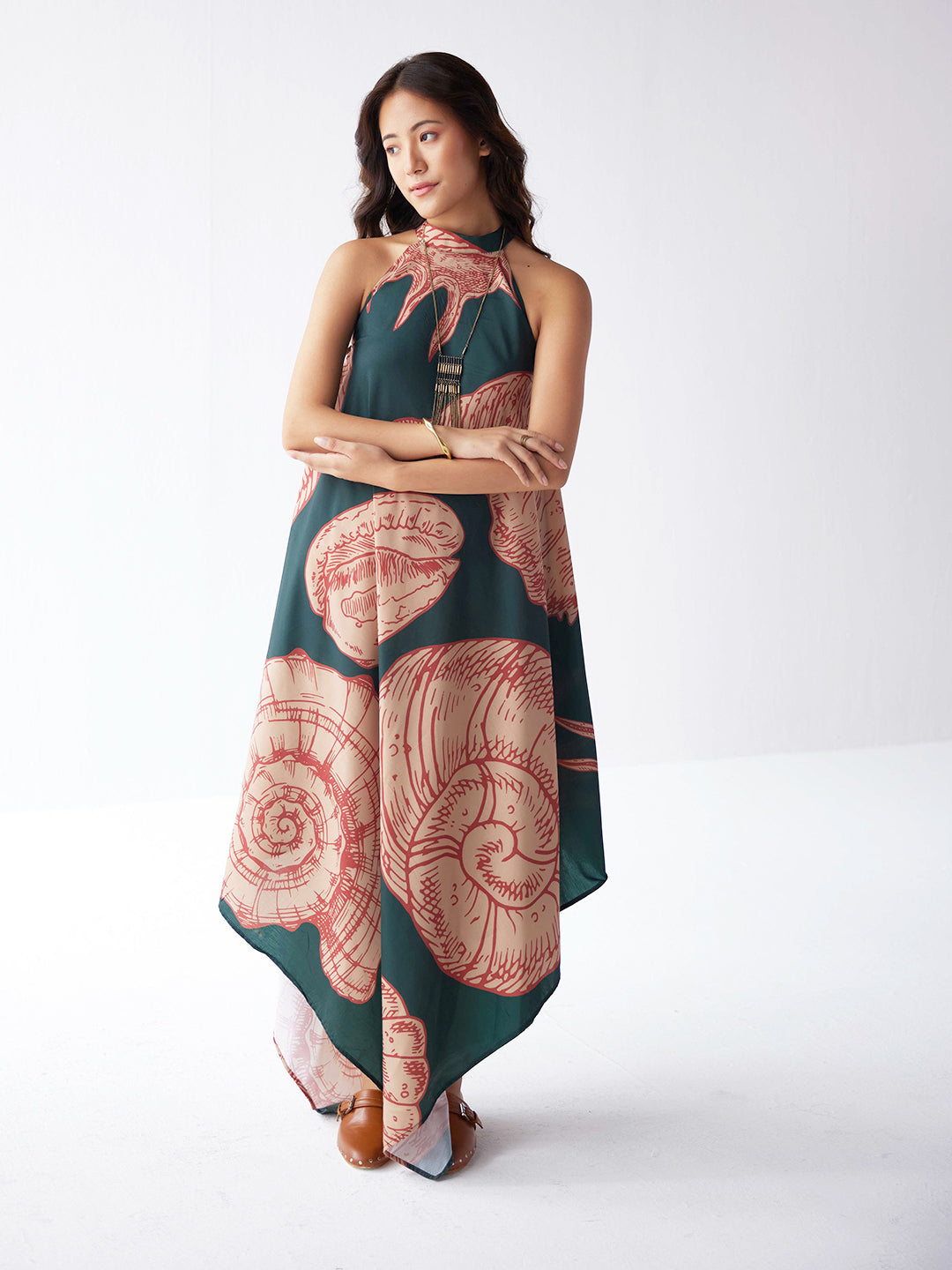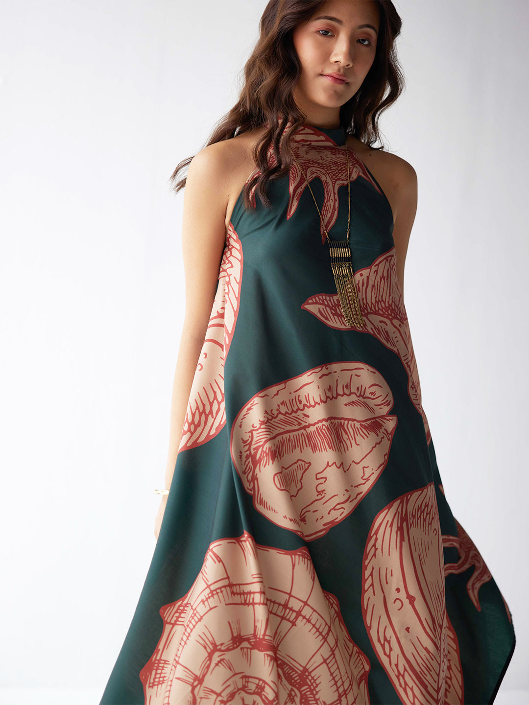 Dive into resort glamour with our Exaggerated Shell Printed Dress. This stunning piece boasts an eye-catching shell print that exudes beachy chic vibes. The exaggerated design adds a touch of drama, creating a statement look for your resort escapades. Embrace the allure of the sea with this unique and fashionable resort dress, perfect for those who seek to make a splash with bold, beach-inspired style.