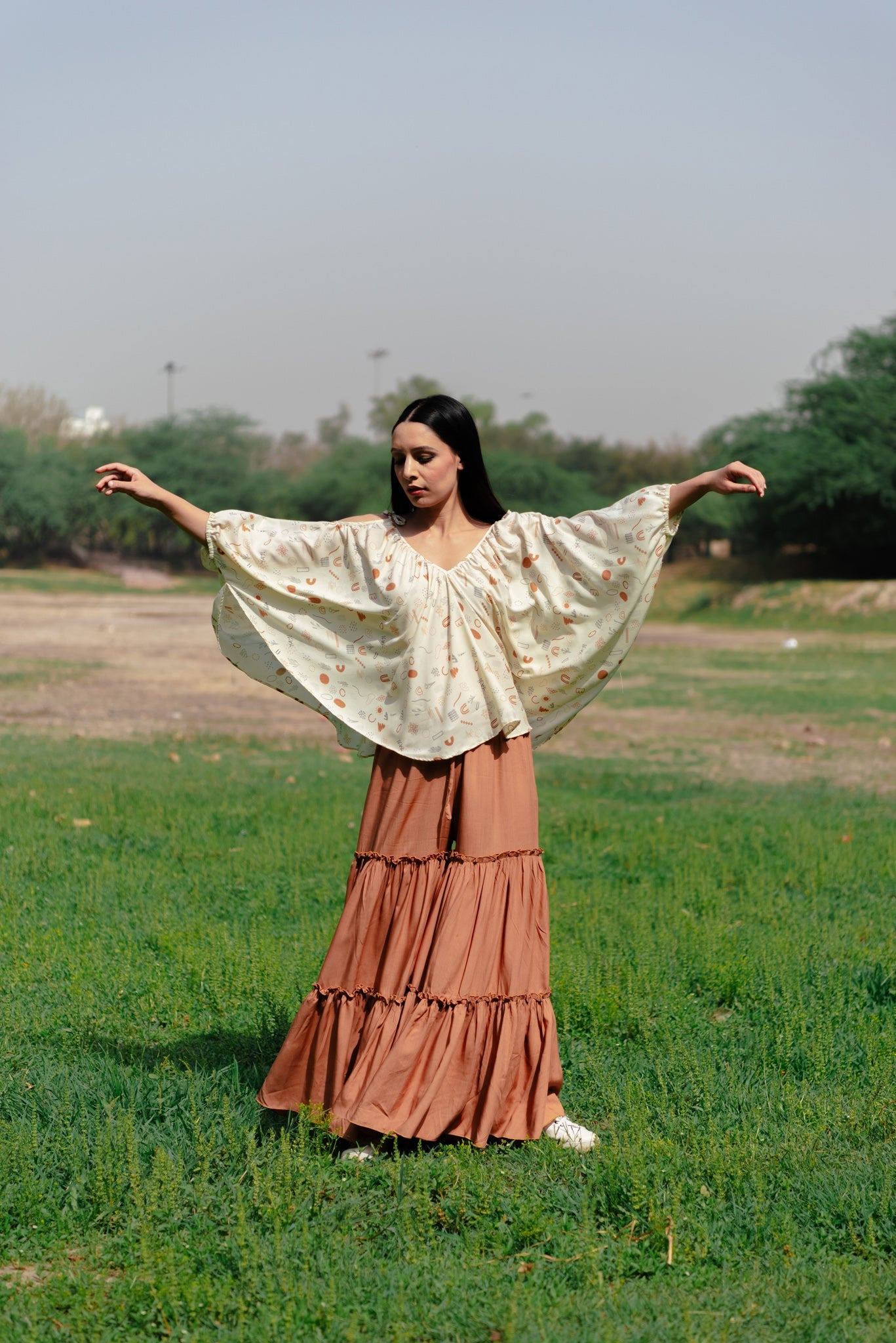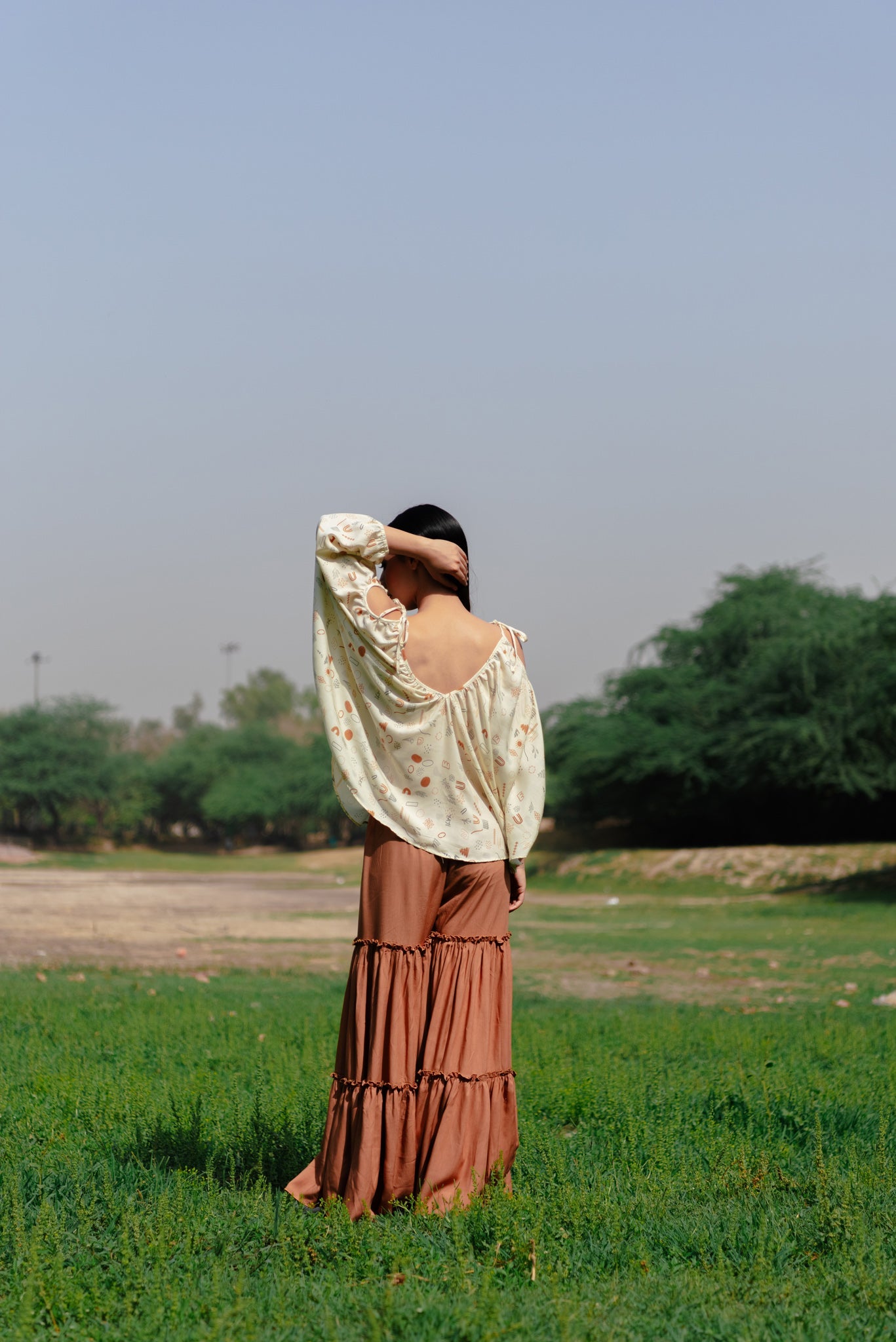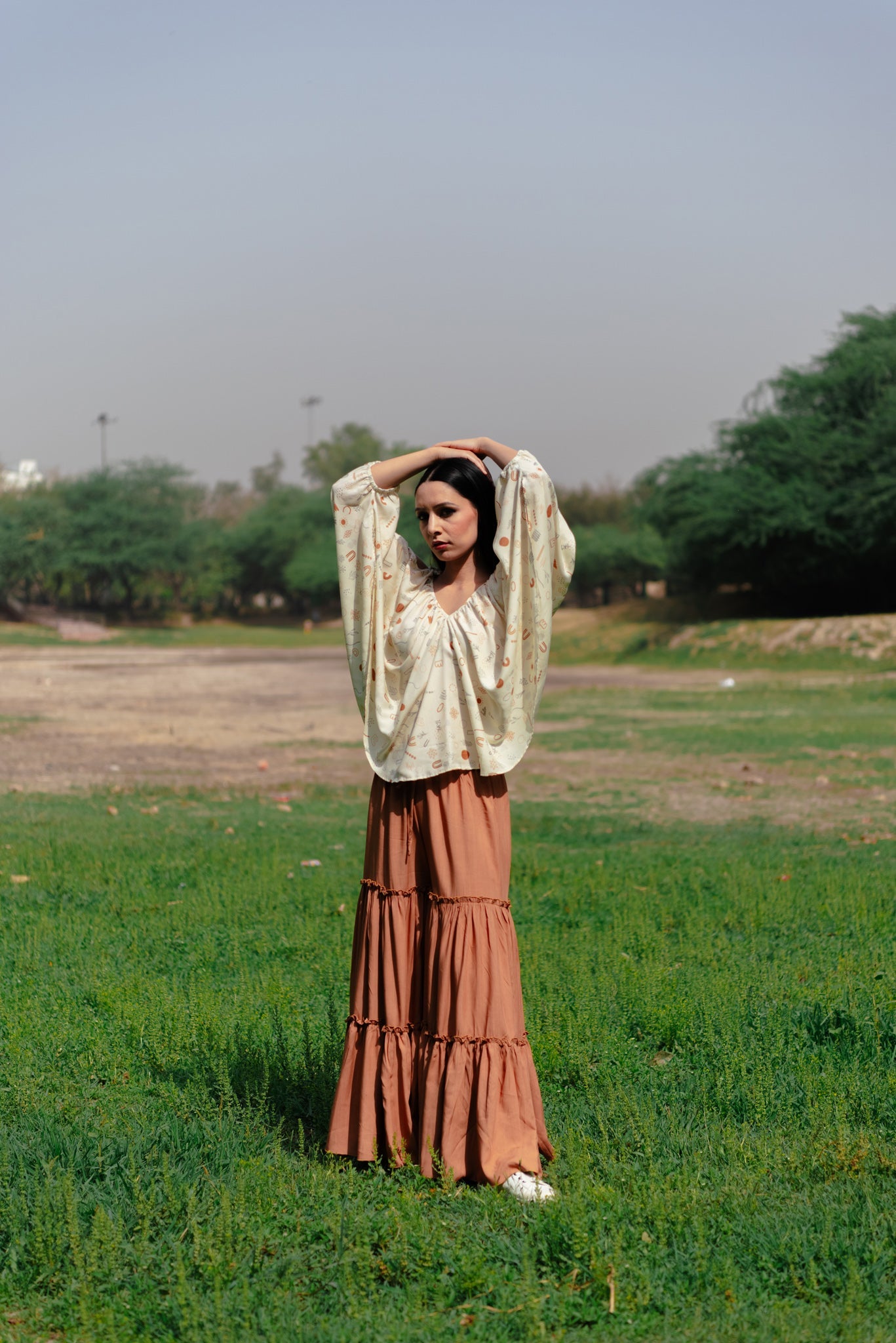 The Luna (off-white) bird top is an effortless, classic piece that you can pair with almost anything in your closet. We suggest brown palazzos for some extra glamour.