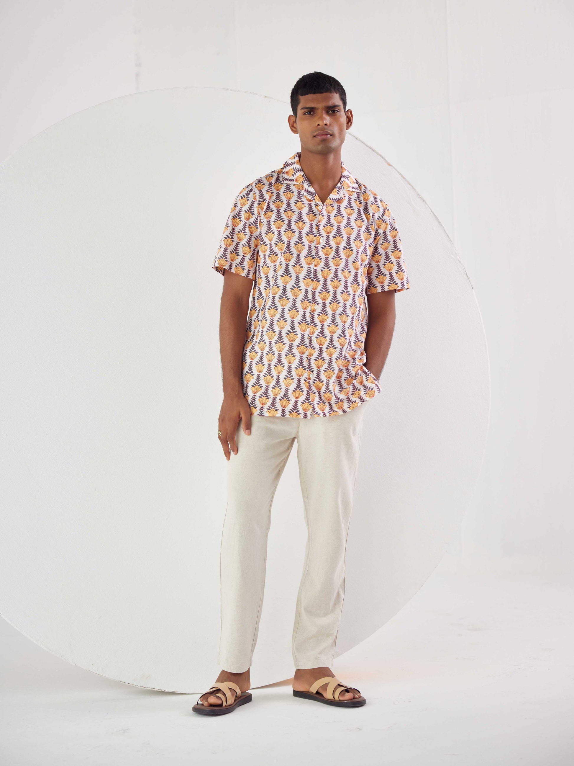 Blossom in style with our Half Sleeve Pure Cotton Printed Resort Shirt adorned with vibrant yellow tulips on a crisp white canvas. Crafted for comfort and designed for charm, this shirt is the epitome of casual elegance. Elevate your resort wear with this statement piece that seamlessly blends breathable cotton with a touch of floral sophistication.